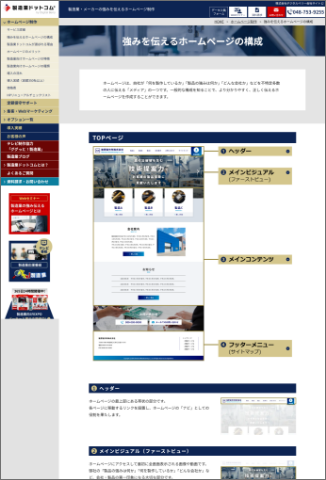 ホームページ制作ご検討中の皆様の少しでも参考になればと思い、製造業ドットコムでできることや製造業様がホームページを作るポイントなどご紹介しています。