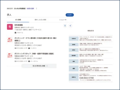 Google お仕事検索とは、Google で仕事や職種名を検索した際に、募集要項が検索結果上に直接表示される仕組みです。