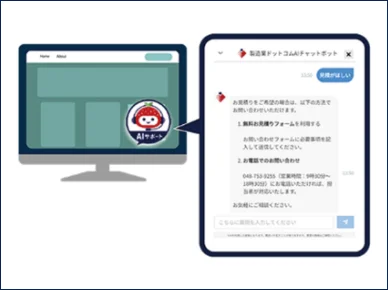 AIチャットボットとは、ホームページ上で求職者からの質問に自動で応答する対話型サポートツールです。